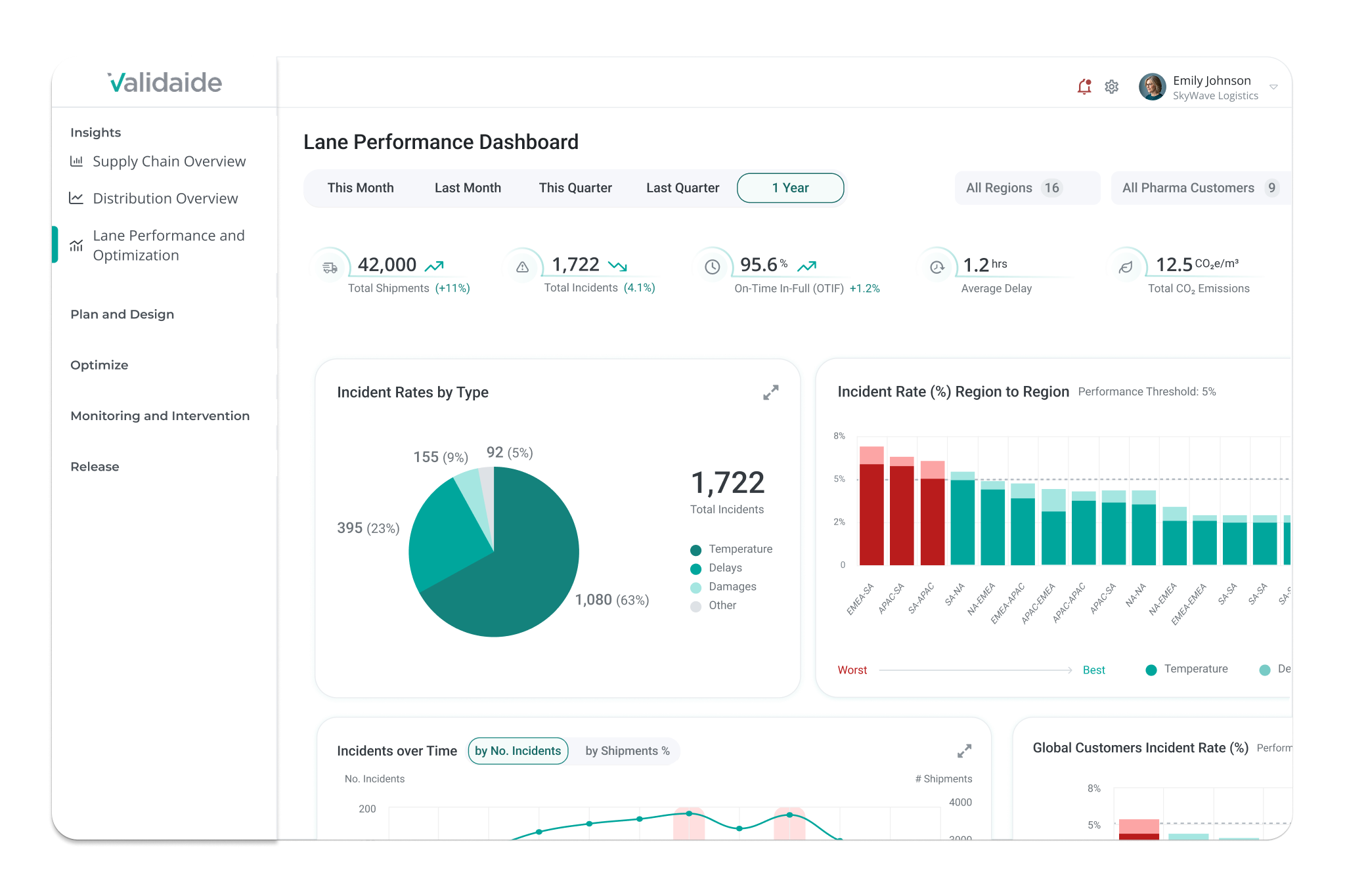 See how lanes, regions, and partners perform side by side. Identify top- and bottom-performing routes using OTIF, excursions, incidents, and intervention data — all grounded in real execution, not assumptions.